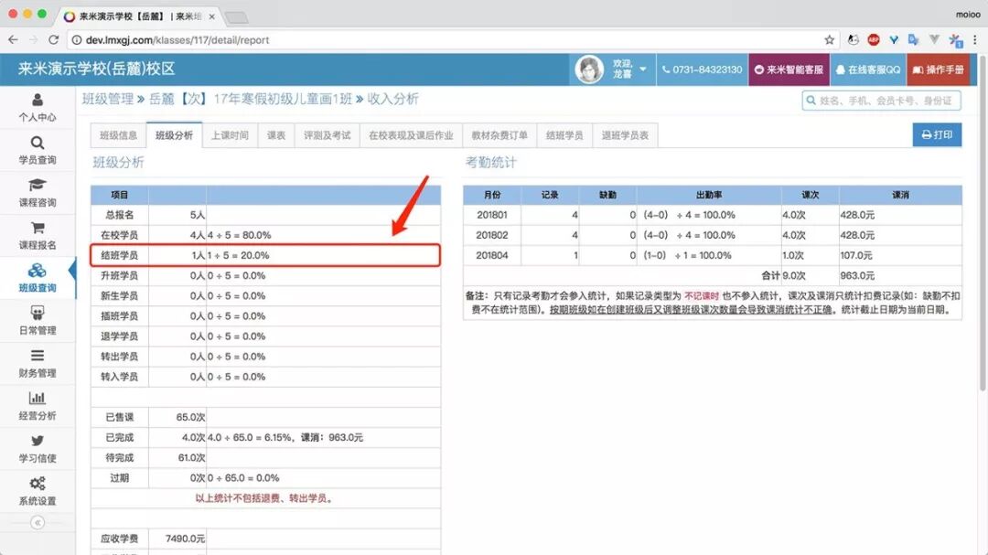 增加「结班学员」比分析,对循环开班的班级分析特别实用。